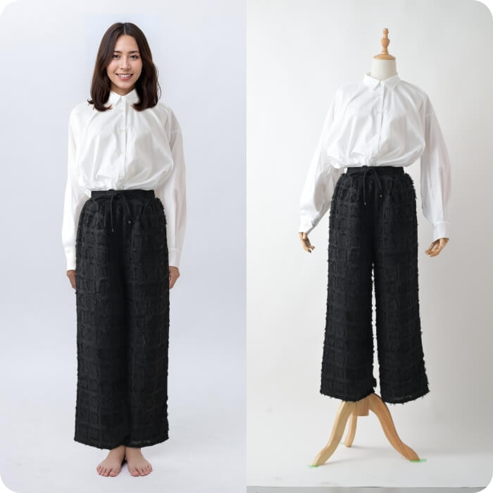 ディレクターが衣類の色合い、質感、着用感まで調整し、ECにそのまま使える自然な仕上がりを提供します。