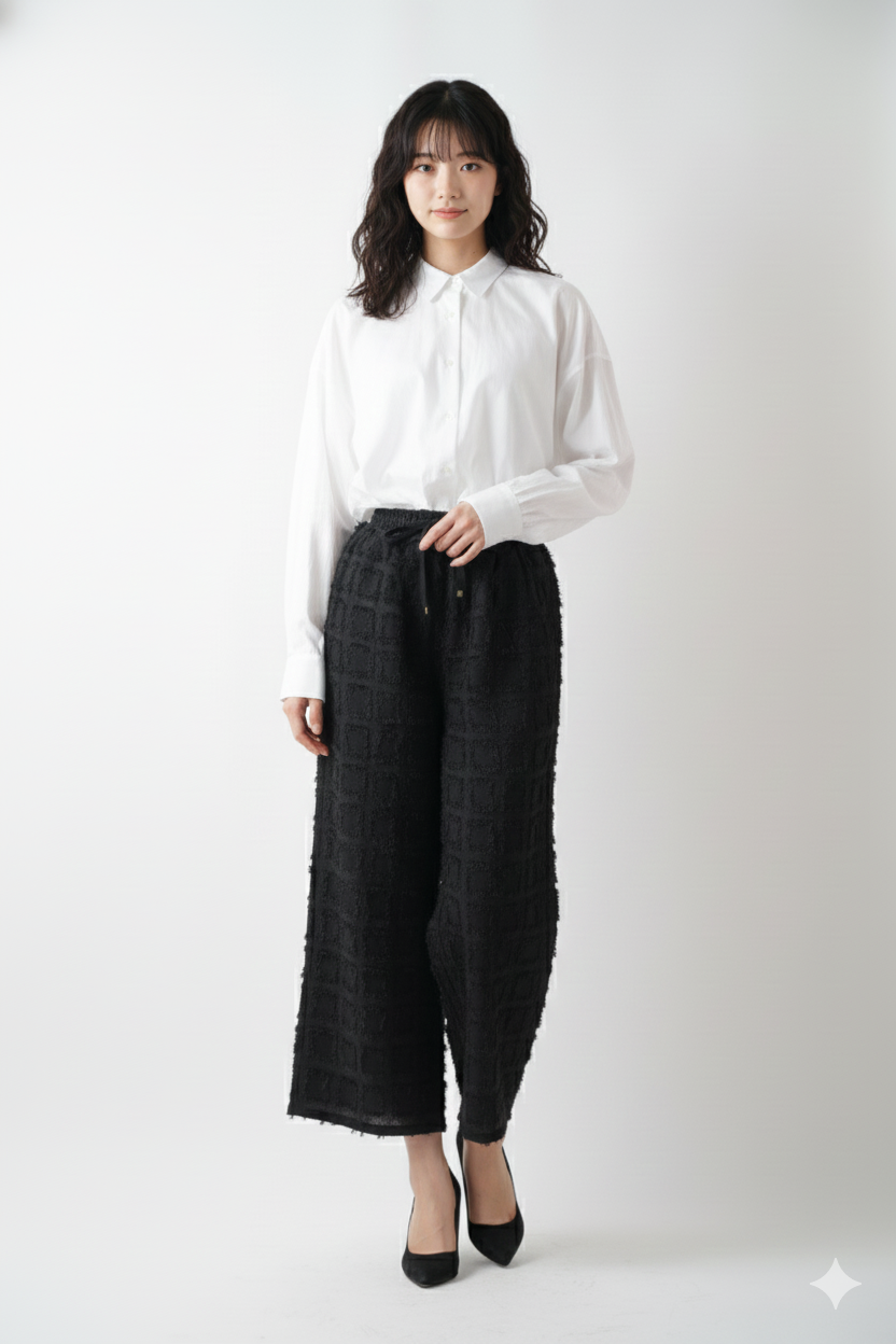 実在しないモデルをAIで生成し、ブランドの世界観に合わせて着用ビジュアルを制作します。表情・骨格・ヘア・スタイル・ポージングまで調整し、EC掲載に適した自然な質感・陰影・シルエットを実現。モデル撮影のコストや日程調整が不要になり、新作投入や色展開にもスピーディーに対応できます。